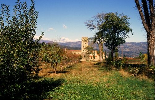 953年創建、1035年建設。ロンバルディア派のロマネスクが力タロニアへ導人されるのは,オリーバ司教Oliva司教による。ビレネ一を挟んだスペイン辺境領でオリ一バは活発に修道院修復に努めた。1035年のクシャ修道院の再建には,当時の方形ののモサラべ式のプ…
